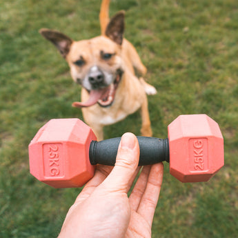 De bite me 'For the Gainz Dumbbell' is perfect voor een cheatday! Het lijkt alsof je hond sportief bezig is maar stiekem kan je snacks in deze kettlebell verstoppen. Ssst! De dumbell is gemaakt van natuurlijk rubber en heeft een handvat uit nylon en verkrijgbaar in 2 formaten: voor kleine en grote honden.